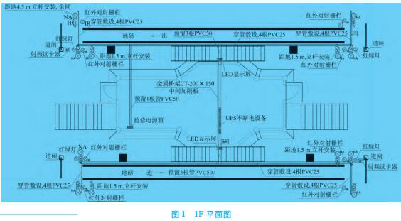 每個(gè)地磅的出口端距離邊緣約0. 5 m處,各 設(shè)置1套射頻讀卡器(立桿安裝),桿高為1.5 m。磅房所有射頻讀卡器所需電源均引自UPS機(jī)柜。 3.2.4智能稱(chēng)重管控系統(tǒng)