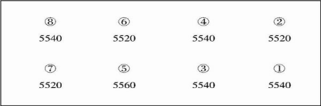 按照調(diào)試方法4,將5540定為調(diào)試基準(zhǔn)點(diǎn),分別調(diào)試修正②、⑤、⑥、⑦傳感器角差,測(cè)得各角對(duì)應(yīng)系數(shù)分別為:②0.99550,⑤1.00000,⑥0.97967,⑦1.00000。